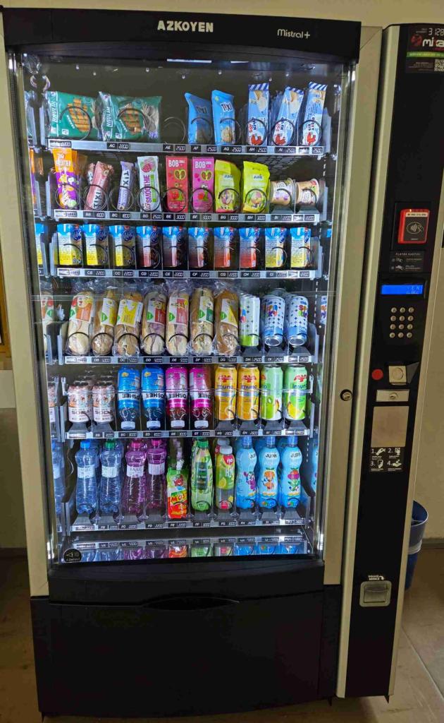 V březnu se žáci naší školy dočkali příjemného překvapení ve formě nainstalovaného nového svačinového automatu, který se nachází u vstupu do pavilonu B3. Kromě mléčného automatu a automatu s nekolovými nápoji chyběla totiž dětem nabídka svačiny ve formě baget (6 druhů) za 50 Kč, ovocných tyčinek, svačinek a různých nápojů. Ukázalo se totiž, že řada žáků II. stupně nesnídá a někteří nemají s sebou do školy ani svačinu. Proto děti automat s jeho nabídkou nadšeně uvítaly. Všechny produkty jsou v souladu s vyhláškou a je u nich online sledována doba trvanlivosti. Platbu lze provést bankovní kartou nebo v hotovosti. Za tři týdny provozu jsme kromě spokojenosti dětí s nabídkou a sortimentem nezaznamenali žádné větší potíže, zboží je doplňováno dle potřeby 2-3 x týdně a je vždy čerstvé. S provozovatelem byla uzavřena řádná smlouva a platí škole poplatek za odebranou energii.