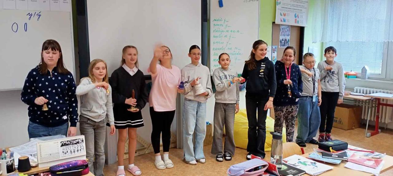 Na svatého Řehoře, čáp letí přes moře… Třída 5.D každým rokem slaví řehořské zvonění. Každý rok nejprve uspořádáme výstavu zvonečků. Potom necháme zaznít každý zvoneček zvlášť. Při zvonění si každý přeje něco pro sebe, pro své blízké. Při společném zvonění jednotlivě přejeme něco naší škole. Co přejeme naší škole?