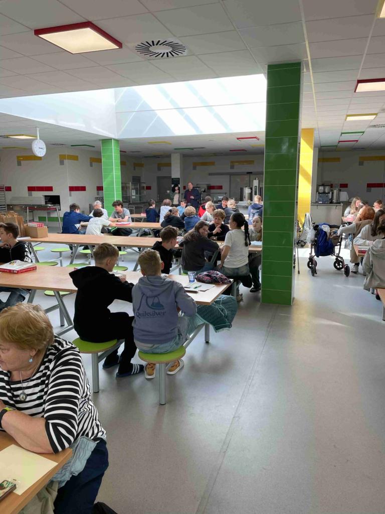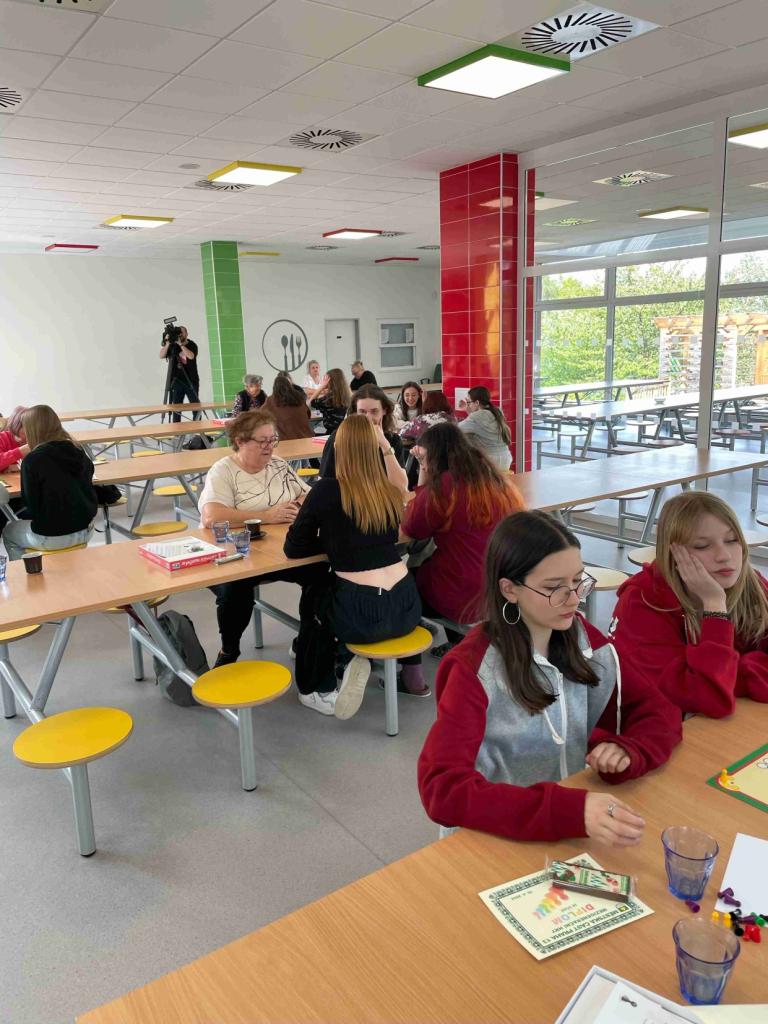 Mezigenerační setkávání, turnaj 20 seniorů z DS Stodůlky s žáky ZŠ Kuncova ve školní jídelně