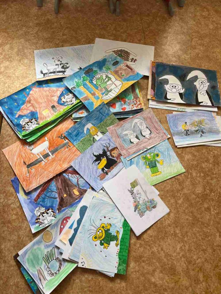 Sešlo se mnoho krásných obrázků s různou technikou a bylo velmi obtížné vybrat ty, které se nám vejdou na prezentační panely. Výběr prováděly děti. A vybraní výtvarníci byli i odměněni výtvarnými pomůckami i sladkostí.